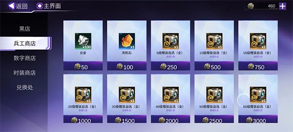 获取极品装备、强化材料,洗炼石,宝石,秘钥,金币等;兵工商店可以拿秘银(材料)兑换极品装备跟合金,洗炼石等,使武装战力进一步提升。