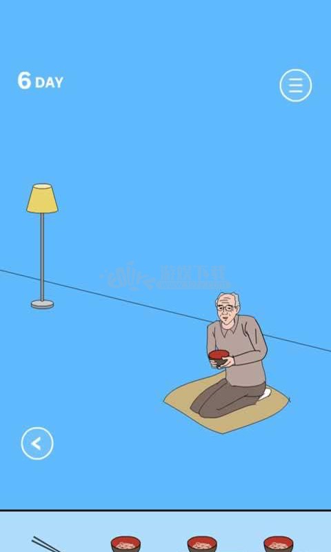 右边房间先捡起筷子给爷爷,然后用左边房间冰箱里的四碗放到爷爷,在垫子下。