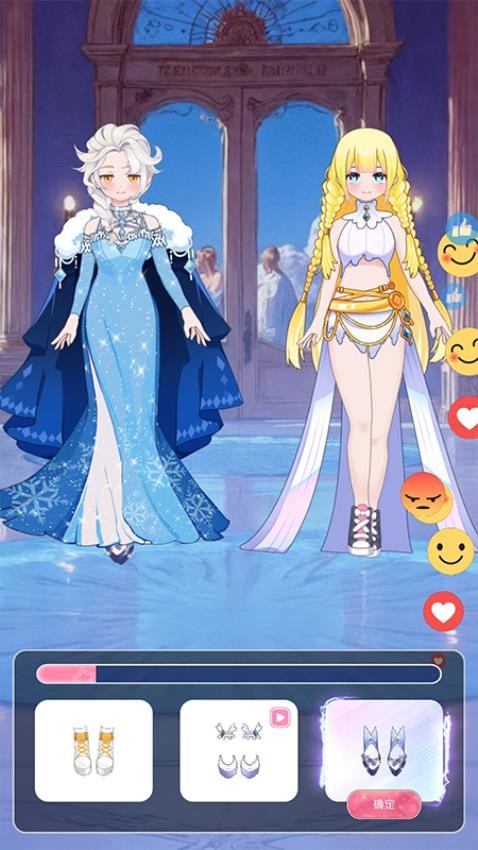 1、充满创意的穿搭游戏,卡通风格的场景,少女心满满,搭配起来会非常的自由。