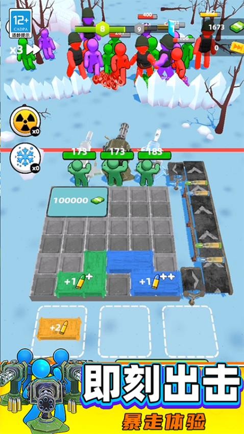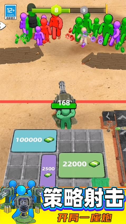 3、进入到挑战关卡中,你需安排三个士兵来操控炮台,并持续供应炮弹。