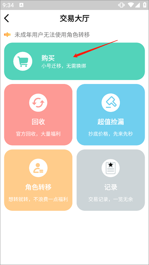 2、进入交易大厅后点击购买功能