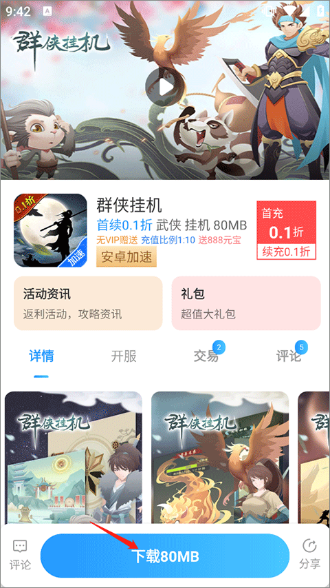 2、进入游戏详情界面后点击下载安装游戏即可
