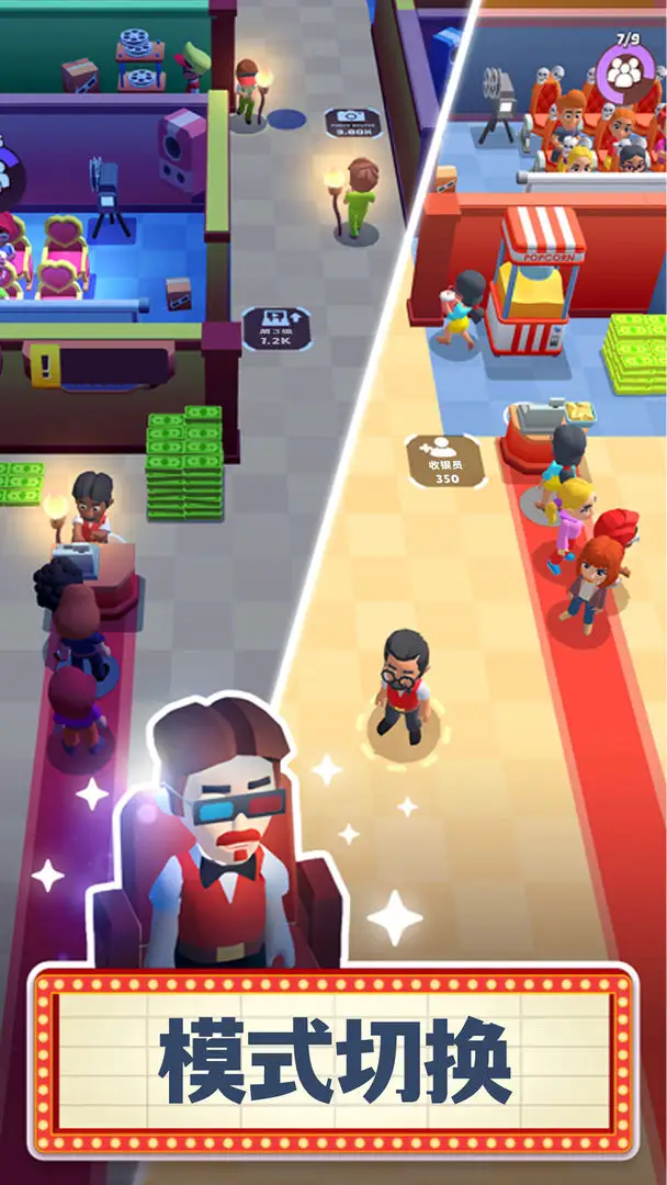 银幕大亨是一款让你亲身体验影院经营魅力的模拟手游,从一间简陋的小放映室起步,你的每一个决策都将影响影院的未来,招募明星员工,升级放映设备,策划热门电影档期,吸引络绎不绝的影迷,看着大厅从门可罗雀到座无虚席,那份亲手缔造繁荣的满足感无可替代,最终你将建立起属于自己的娱乐帝国。