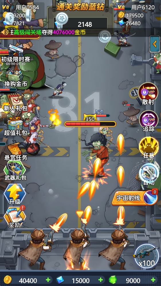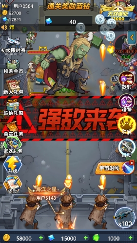 2、炫酷十足的射击特效带你享受割草般的射击闯关乐趣,消灭怪物还能够获得钻石奖励。