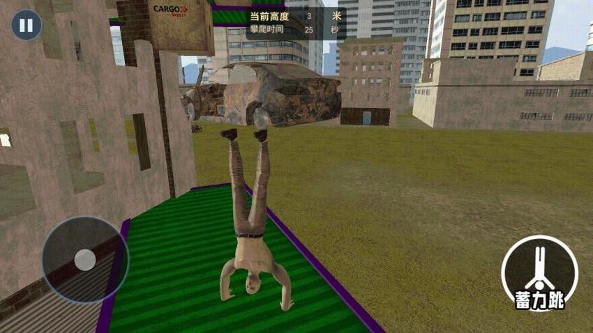 《跑酷大师闯关》是一款创意跑酷类游戏。玩家操控倒立人角色,在都市废墟场景中展开跑酷冒险,通过蓄力跳等操作攀爬至更高处,挑战不同关卡的时间与高度目标,体验倒立跑酷的独特乐趣,成为跑酷界的大师级玩家。