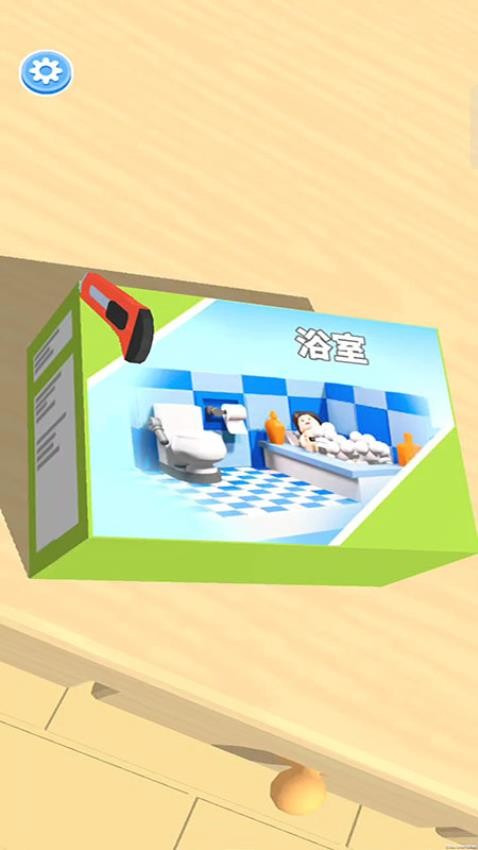 2、在众多的积木中找到浴室地板,将它们全都拼起来,得到完整地板。