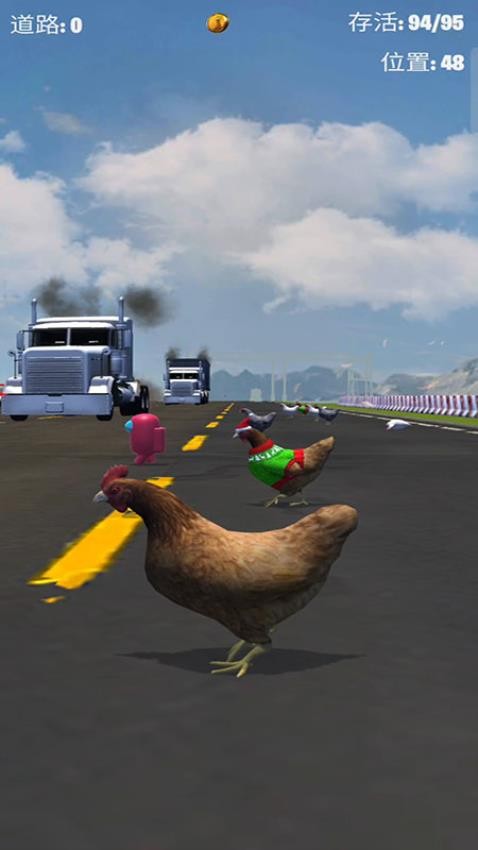 数十只鸡和其他动物正在过马路。快速奔跑以过马路并躲避车辆!击败所有人。成为第一,成为我们的鸡大逃杀中的佼佼者!成为农场上最快的鸡,并在鸡战中获胜。