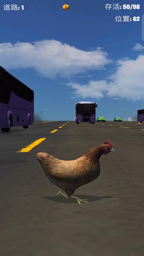 路上的车辆非常多,您需要合理控制小鸡移动才能不被撞击,掌握前进的时机