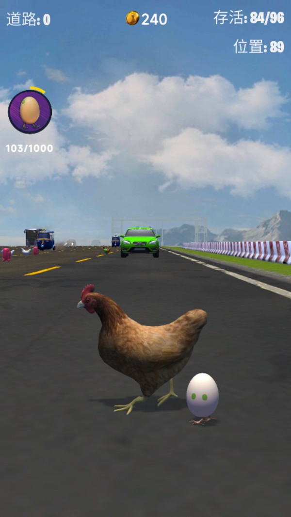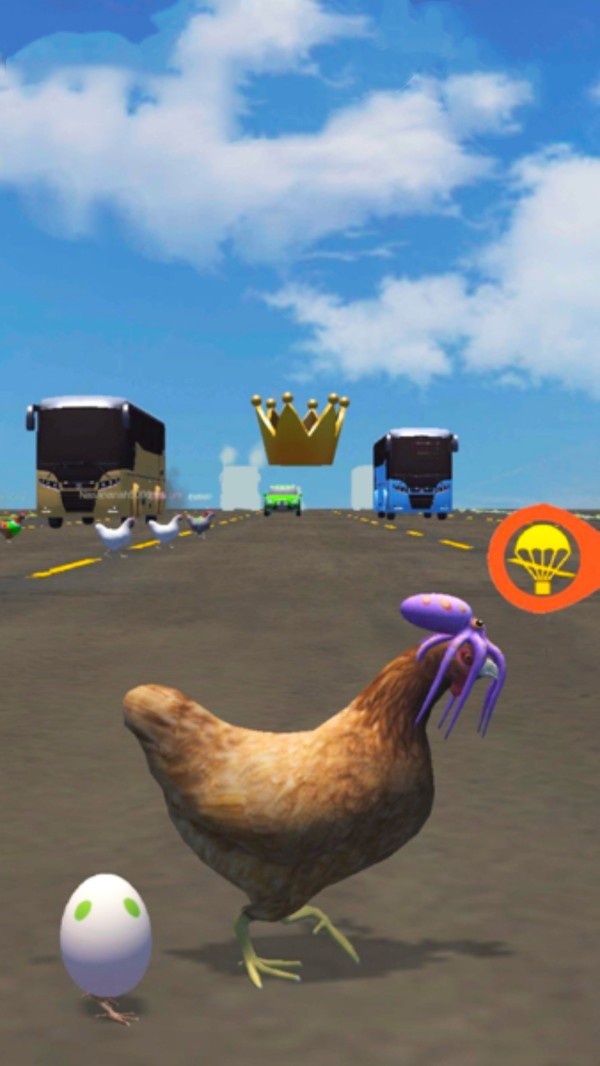 数十只鸡和其他动物正在过马路。快速奔跑以过马路并躲避车辆!击败所有人。成为第一,成为我们的鸡大逃杀中的佼佼者!成为农场上最快的鸡,并在鸡战中获胜。