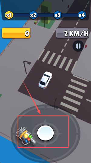 开始冲撞:在车道界面查看初始速度2KM/H,点击屏幕加速,撞翻所有目标!