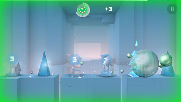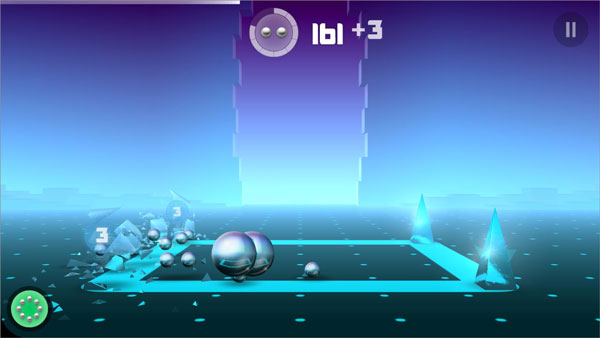 3、游戏有蓝色锥形和紫色菱形等玻璃体的存在,玩家可以通过打碎它们来获取不同数目的弹珠;