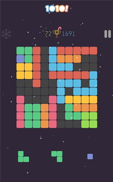 只要是玩过俄罗斯方块的家伙们应该都有一个喜好,那就是将满屏不错落的摆满格子,然后等到一个机遇来了以后,一下,看着满屏消除殆尽,有着说不出的成就感,也就是游戏能够带给我们的爽快感,但是这点在1010游戏中是行不通。