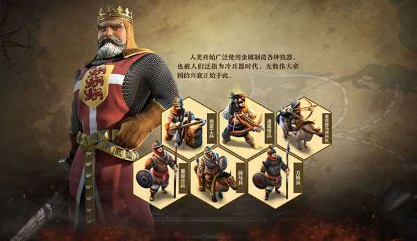 铁器时代特色兵种:地雷工兵、诸葛弩兵、重装骑马突击队、重装步兵、骑马兵、方阵兵