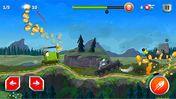 3、带领战场歼灭敌人,调准正确的射击角度,在场地中射击敌方坦克,消灭一切!