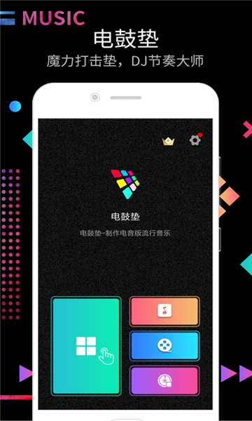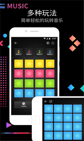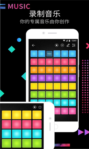 每个打击垫都是一个音轨,不断点击制作电音旋律,一键录制,保存并分享。