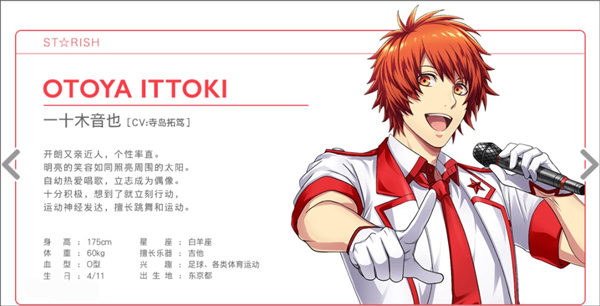 私生活被谜团包围的神秘偶像,偶像工作之外还会作词作曲。外表看不出他的毒舌,其实只是心直口快并无恶意,对于一些小事也抱有疑问并深入研究。