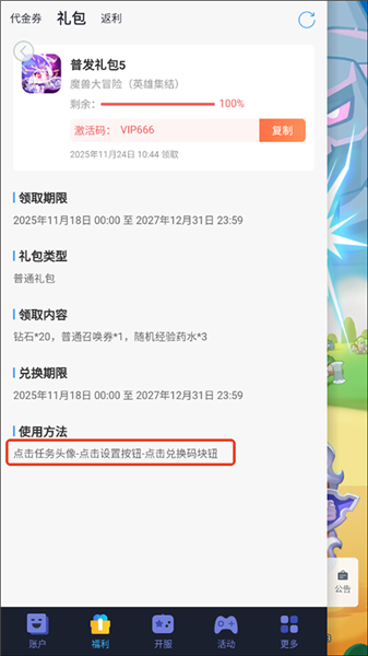 礼包兑换码教程