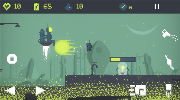 屏幕上方的图标依次为生命值、电力值、汽油剩余以及现在时间,最后的是暂停按钮。