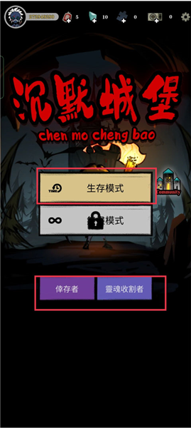 1、游戏的开始是选择你的角色:幸存者or灵魂收割者,然后进入生存模式开启游戏。