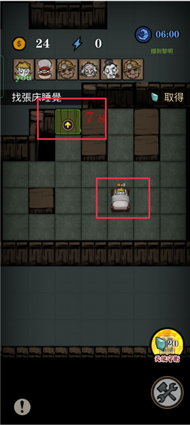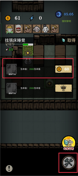 5、玩家第一步就是找到离自己最近的房间躺在床上,然后用获得金币新增、升级道具、门和床,这样就能防止灵魂收割者来将你抓走。