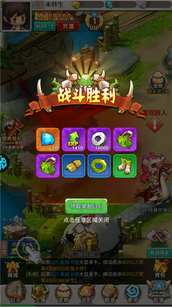 4、闯关战斗,打败各式各样的怪物们,领取资源和奖励。