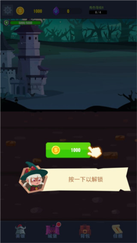 1、进入地下城与古堡游戏后,首先点击解锁按钮,这将为你提供丰富的资源产量,通过解锁,你将能够获得更多的黄金和其他重要资源,这将有助于你在游戏中的发展和建设;
