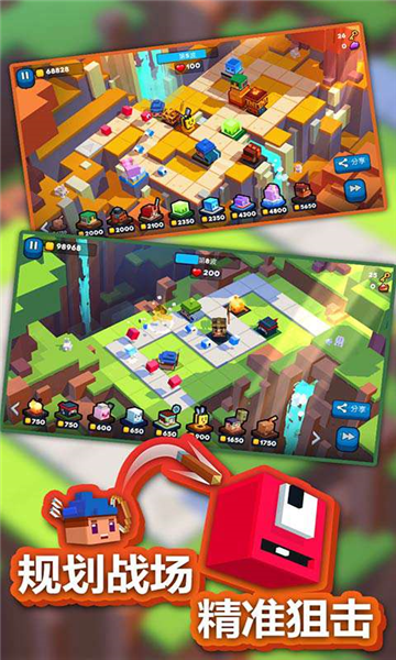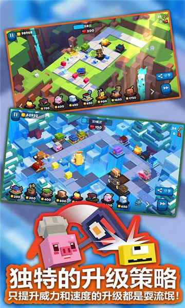 1、20多种方块英雄,具有别具一格的升级策略。