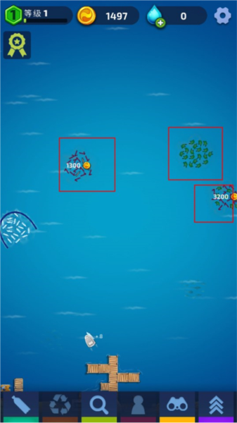 3、开始从海面收集垃圾并开始清洁海洋,将垃圾放入破碎机,出售粉碎的方块。