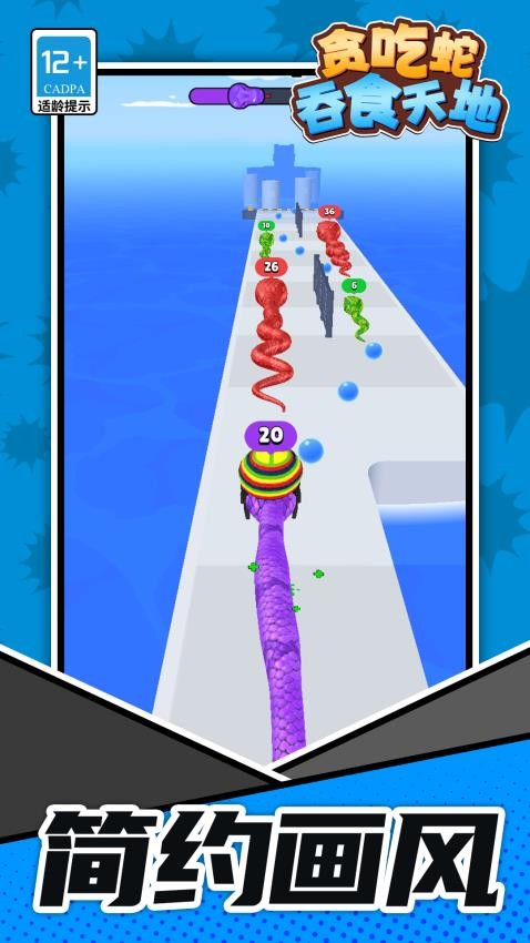 《贪吃蛇吞食天地》是一款十分好玩的跑酷休闲游戏,游戏中,玩家需求控制一条贪吃蛇在跑道上奔跑,规避障碍物并吃到尽可能多的食物来取得高分。乐趣上也是十分的高哦。