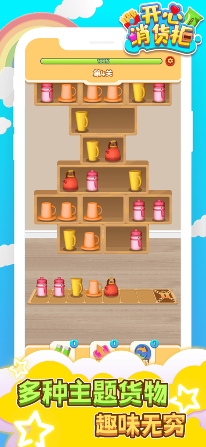 开心消货柜是一款融合了整理收纳和三消策略的休闲手游,它将你带入一个琳琅满目的货品世界。你的任务就是将货架上那些五颜六色、形状各异的商品,通过巧妙的移动和配对来一一消除,体验整理与消除带来的双重乐趣。