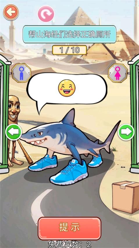 您需要安排山海经怪物进入男厕所,进入女厕所,匹配成功就胜利,匹配错误就失败
