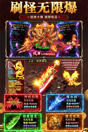 拒绝繁琐任务,告别升级焦虑!上线即战,三分钟刷爆BOSS,新服专属狂欢机制让BOSS秒刷新、小怪遍地掉神装。装备保值率高、流通性强,平民玩家靠双手打宝也能逆袭成神,真正实现人人可爆装,把把有惊喜”。