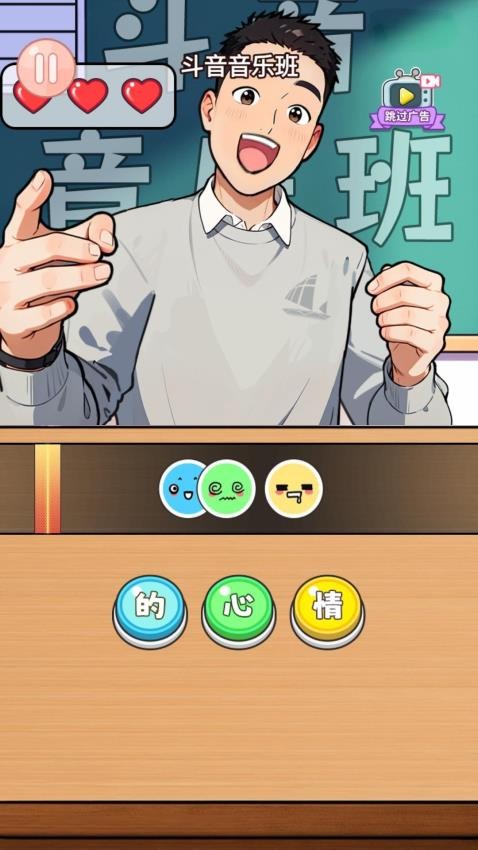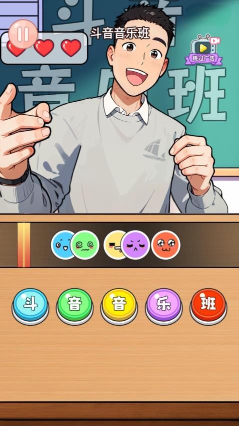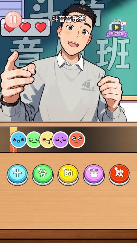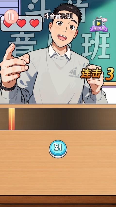 在这款轻快活泼的音乐节奏游戏中,你将化身音乐班学员,跟随讲师的指引开启手速挑战!游戏核心玩法简单却充满魔性,当节奏来临时,必须精准跟随节奏点击,避免漏点!上方五个表情各异的圆脸会实时反馈你的操作——绿色难受、紫色皱眉等表情提醒你注意连击状态。每成功点击按钮,右侧连击数持续累积,左上角的三颗红心是你的生命值。