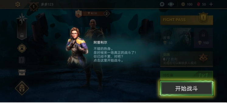 3、按照提示完成新手教程后,返回游戏主界面,点击右下角【开始战斗】;