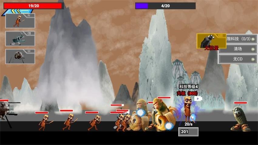 5、您可以在游戏升级科技,升级科技可以增加能量,有足够的能力才能添加新的怪物加入对抗