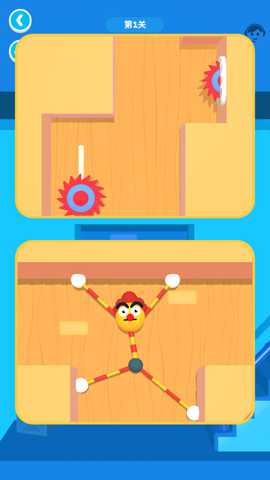 2、看到被捆绑的橡皮人,玩家需要通过移动橡皮人的手脚,帮助它顺利露出笑脸,才能顺利过关。