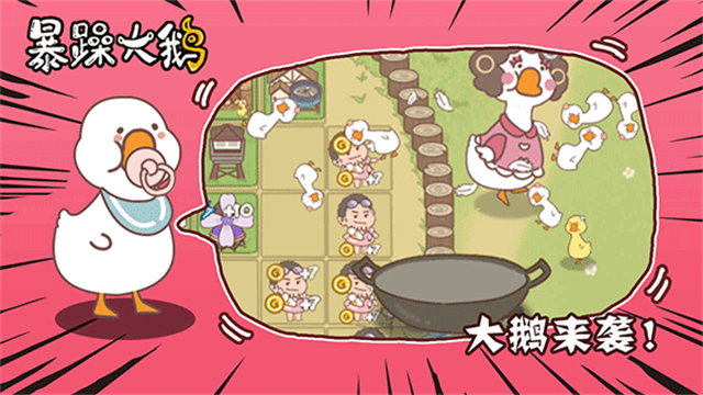 暴躁大鹅是一款休闲有趣的放置策略游戏,可爱卡通的游戏画风,多种不同模式的战斗方法,十分自由的玩法,还可选择游戏难度。玩家需要灵活躲避成群结队的大鹅的袭击,守护好自己的庄园,建造围栏,修护好墙院来抵御大鹅的攻击,篱笆围栏,建筑设备,守卫角色等都能通过金币进行升级建造,金币会随着时间而增长,集中火力在庄园入口处防止大鹅进入破坏田地,成功守护自己的庄园。感兴趣的玩家可以下载体验,开始有趣的塔防竞赛挑战。