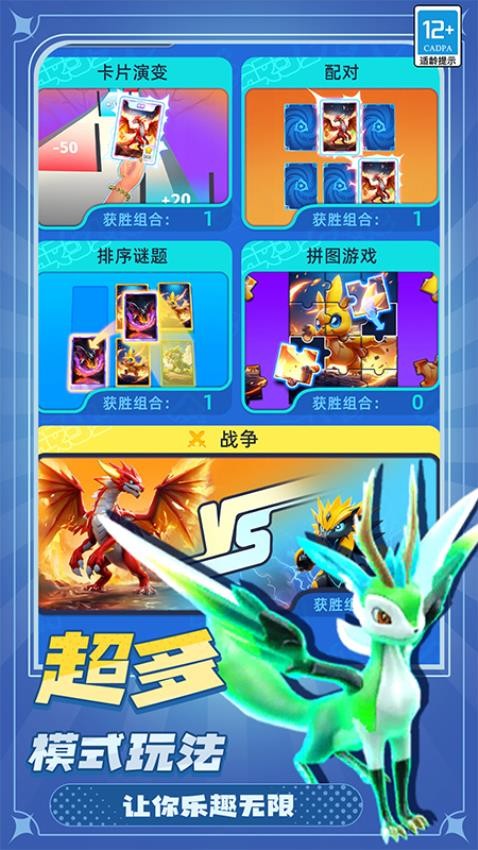 3、能够在游戏中解锁不同玩法,包括了卡片演变、配对、排序谜题、拼图等等。