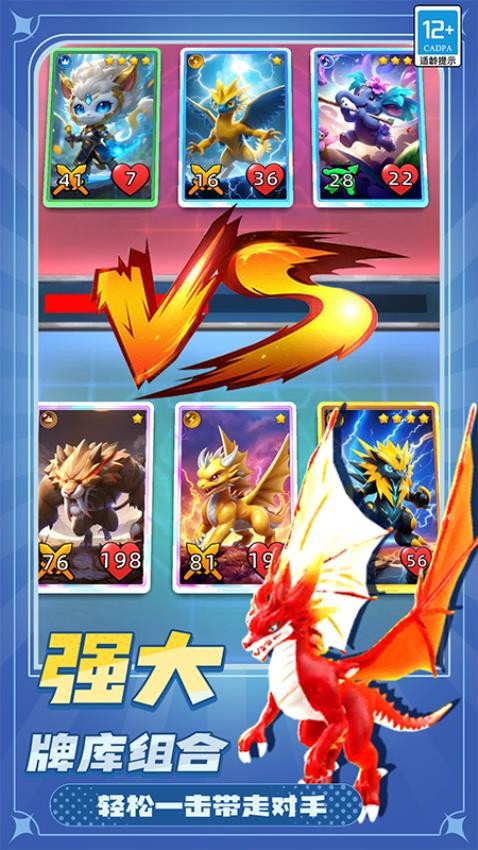 4、与敌人使用卡片对战的时候,你需挑选最佳卡片来对抗敌人的萌兽,逐步获得胜利。