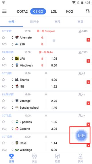 【赛程比分】职业赛事的各级赛事和地区赛事直播,每一场比赛的比分播报;