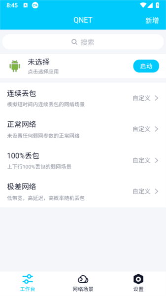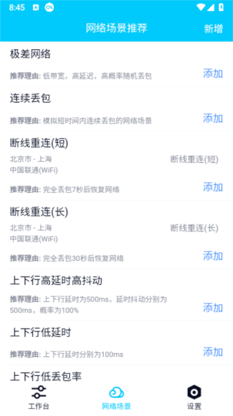 参数本地修改,qnet弱网2.15版本app支持预置、自定义弱网模板,支持浮动窗口,测试时一键切换弱网配置。