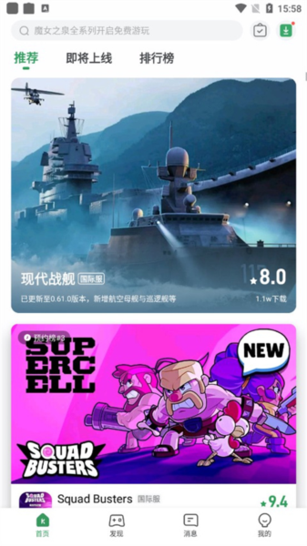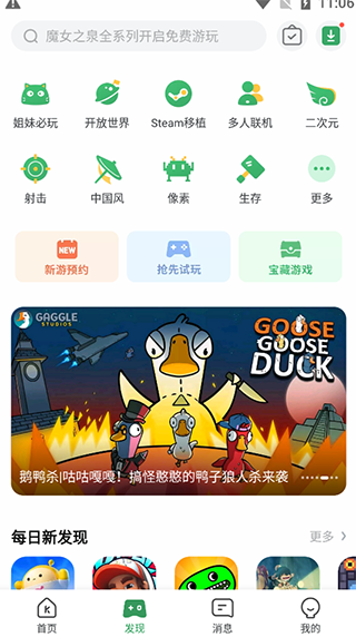 2、在发现界面,玩家可以找到想要的游戏类型