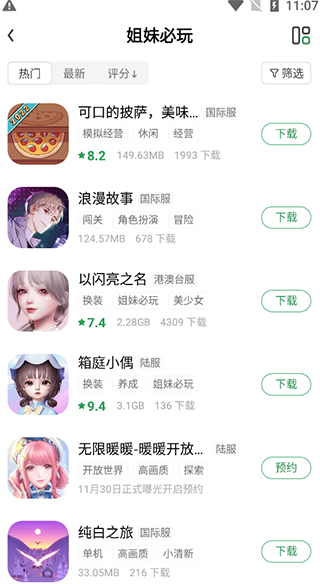 3、还有热门、最新、评分等分类的游戏