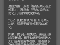 进阶方案:点击「解锁/关闭画质帧率」,再点击「开启/关闭SG优化开启SG优化即可。