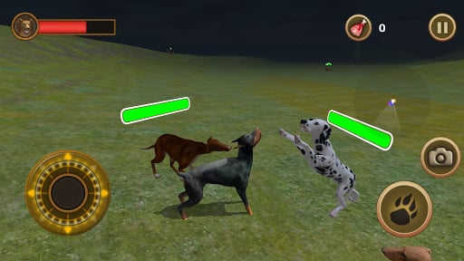 虚拟摇杆:左侧摇杆控制狗狗移动方向,右侧摇杆控制视角转动。