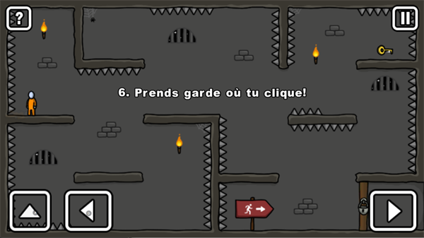 第6关「Prendsgardeotuclique!」属于典型的陷阱关卡,玩家需要谨慎点击屏幕,避免误触隐藏机关或致命陷阱。游戏中的每一关都拥有独特的规则与挑战,考验玩家的观察力与判断力。