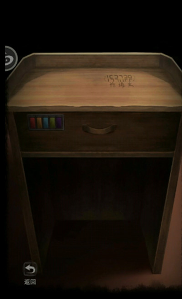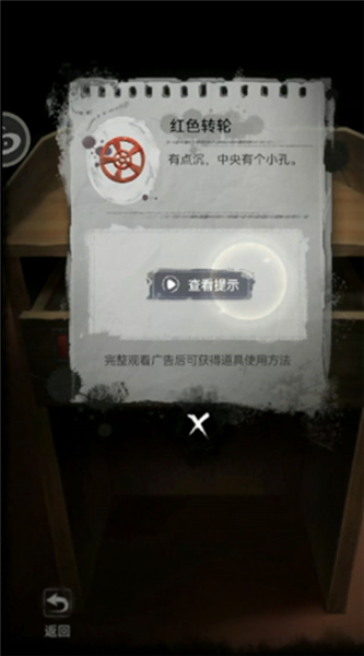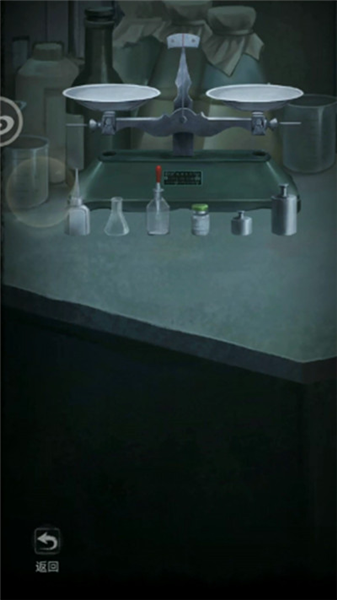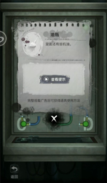 11.将红色转轮安到剧场右门装置下方右边回到分析室,柜子第二个有一张纸,将空油瓶放到中间的实验台上。