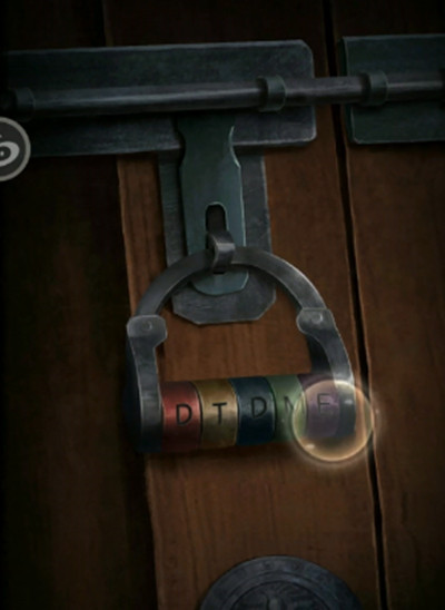 10.结合有色英文字母打开剧场中间台上讲台格子的机关(绿紫红蓝黄),得到红色转轮。