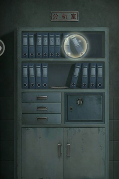 9.回到剧场左门,到装置左边分析室,左边柜子上文件排列FXNDA。