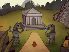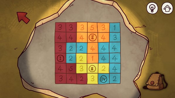 20、将狮子雕像放入地面的凹槽中,可以打开暗道,在右侧放入红色方块。周围数字代表在这行/列 当中有几个方块。